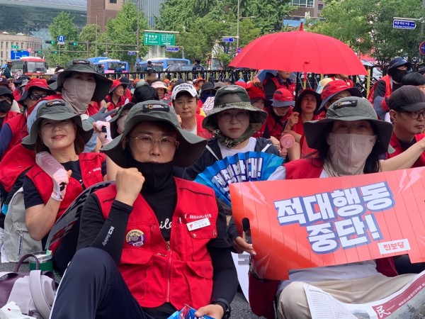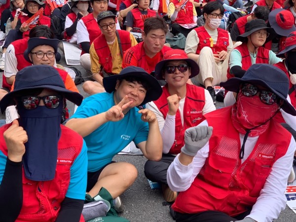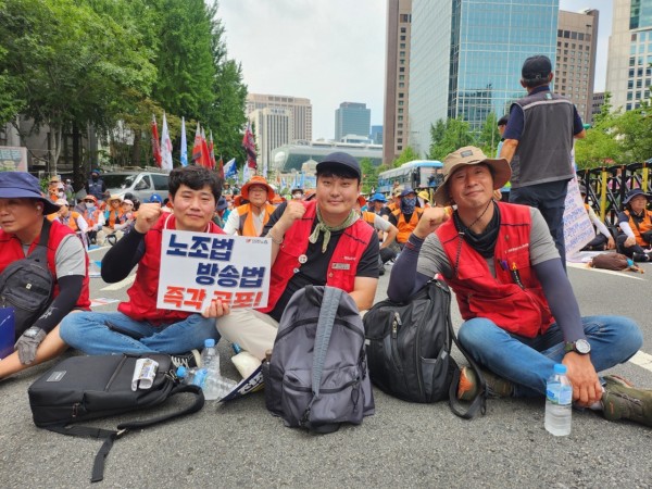 2024년 8월10일 윤석열 정권 퇴진! 한미일 군사동맹 추진에 맞서기 위해 세종충남지역노조 동지들이 폭염에도 아랑곳하지않고 사수하고 있다.