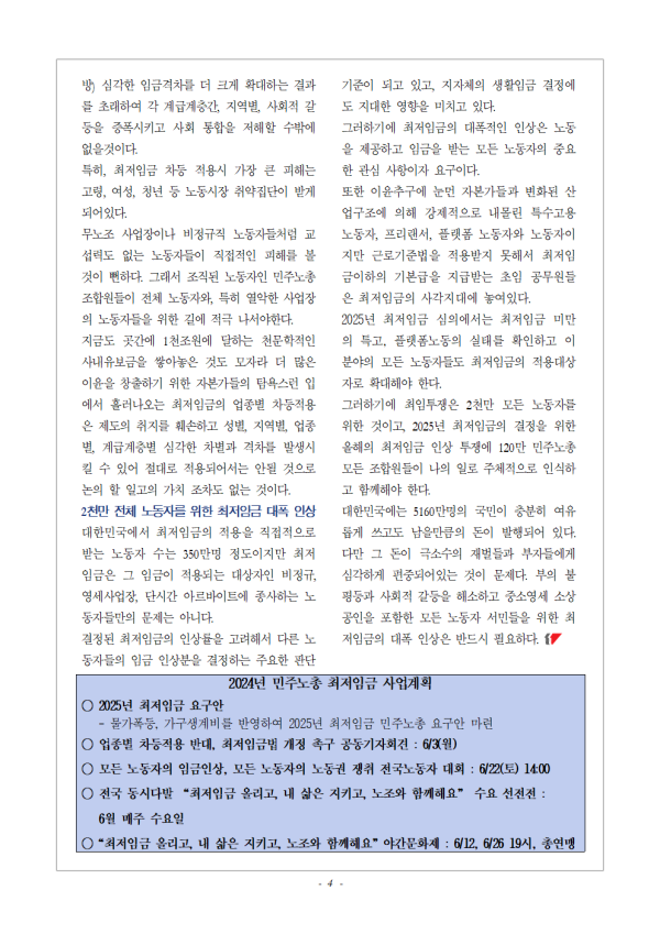 최저임금교육지 페이지 정보 작성자 세종충남지역노동조합 조회570회 작성일 24-05-21 14:01 본문 최저임금교육지 첨부파일 [최종] 2024 최저임금 교육지.hwp (1.0M) 8회 다운로드 | DATE : 2024-05-21 14:01:37 목록